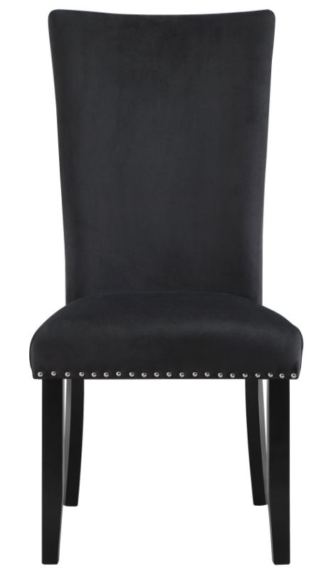 The D03 Dining Chair by Global Furniture USA, in plush black velvet, seamlessly blends comfort and style. Its timeless design is accentuated by elegant nail head trim, making it a sophisticated addition to your dining space.Read More