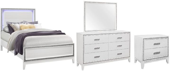 Includes: (1) full bed, (1) dresser, (1) mirror and (1) nightstand