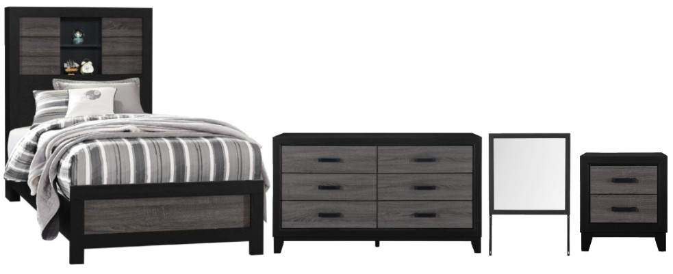 With its urban farmhouse design, the best of farmhouse and urban living combine to create an upscaled farmhouse appearance. The case pieces are black with rustic grey wood inlay. In addition to the two-tone design, the metal hardware completes the mixed media look and adds a modern flair.Read More
