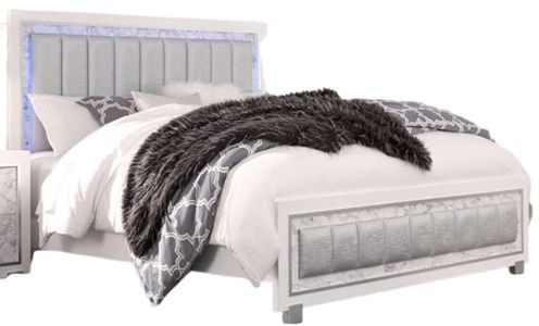 The Global Furniture USA Santorini metallic white queen panel bed with LED adds modern elegance to your bedroom. Featuring a sleek metallic finish, mirrored accents, and built-in LED lighting, it offers both style and ambient functionality for a luxurious experience.Read More